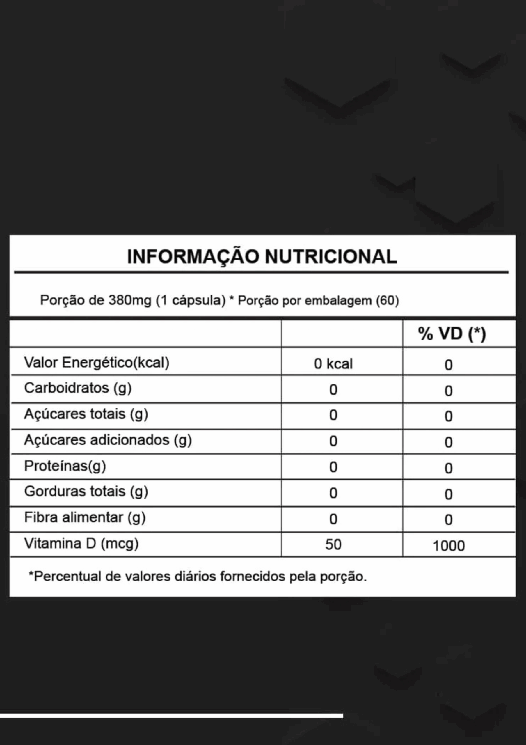 Porção de 380mg (1 Cápsula) | Porção por embalagem (60)